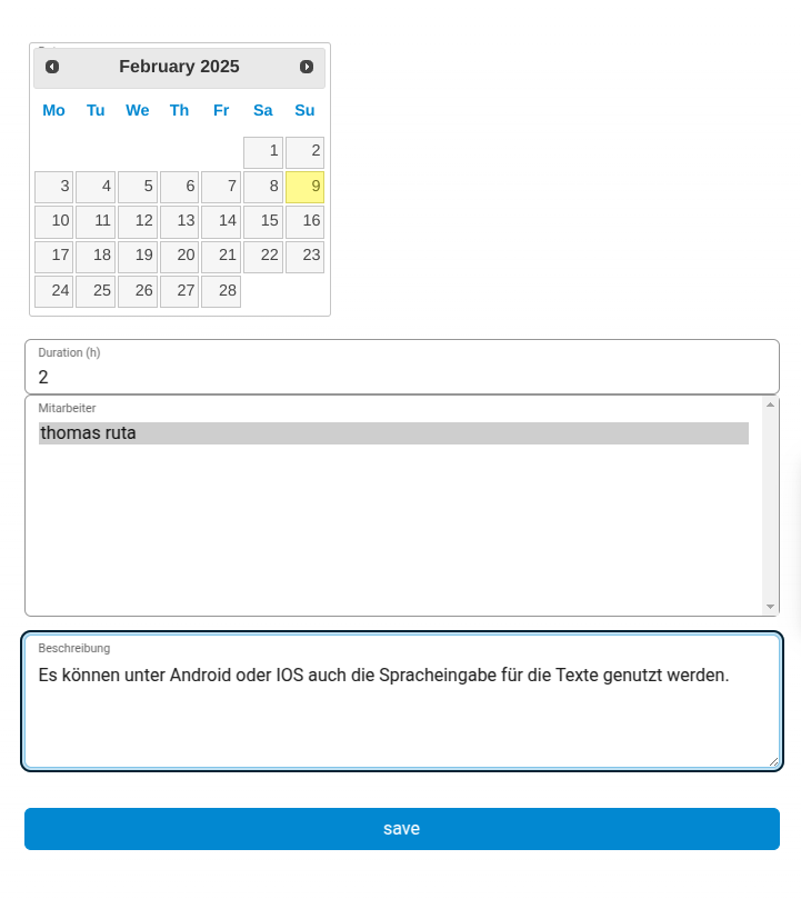Schnelle und einfache Eingabe: Mitarbeiter können ihre Arbeitszeiten direkt über die Web-App erfassen.