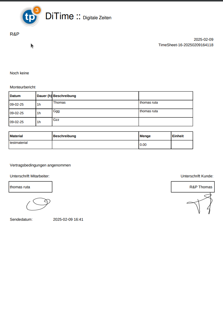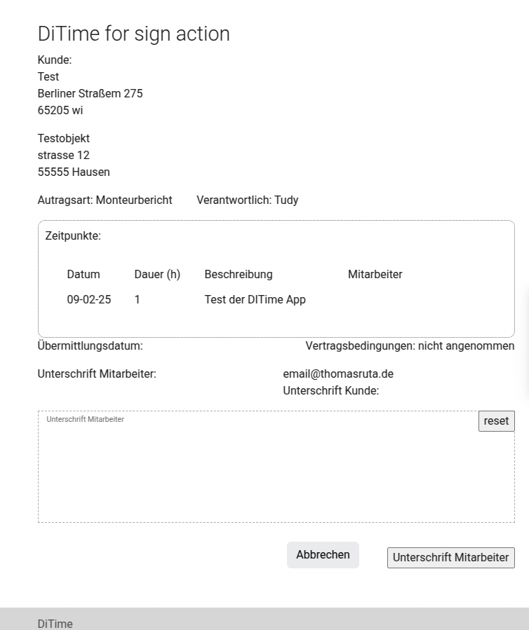 DiTime erleichtert die Zeiterfassung und Dokumentation beim Kunden vor Ort. Dank der intuitiven Web-App, der Möglichkeit zum Bild-Upload sowie der digitalen Unterschrift ist der Prozess effizient und papierlos. Probieren Sie es aus und optimieren Sie Ihre Zeiterfassung mit DiTime!