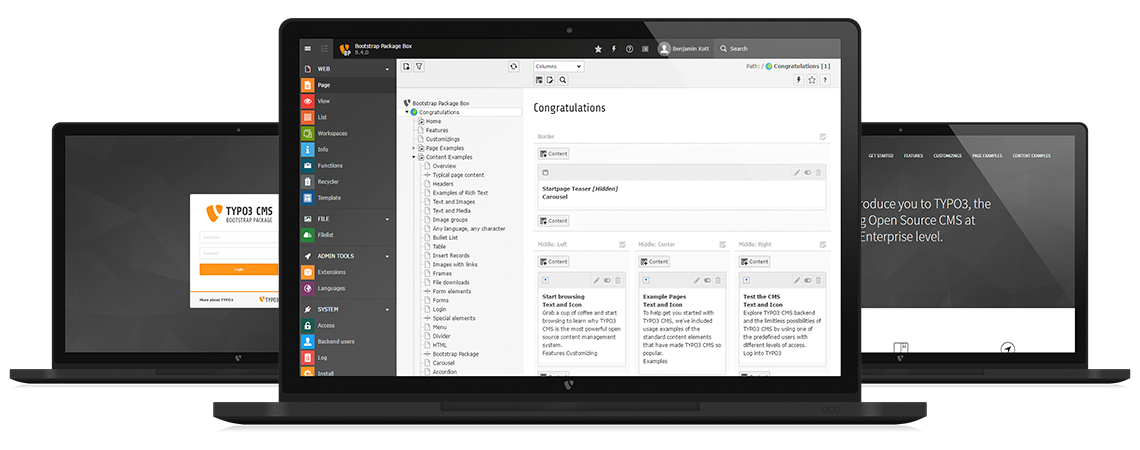The administration interface, called TYPO3 Backend, can be managed from any modern web browser, including tablets and smart phones the same way. Publishing a small change on-the-go or working with tablet devices to add content has never been easier.